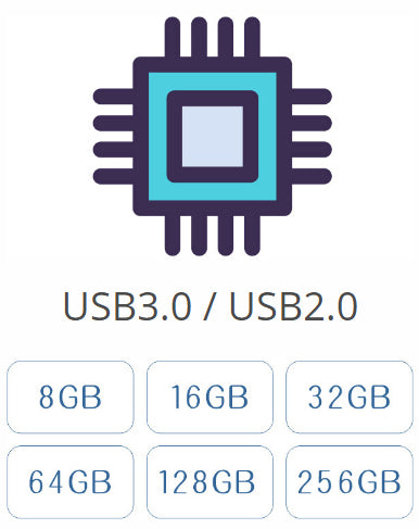 USB2.0 and USB3.0 transmission interfaces and various capacities are available.